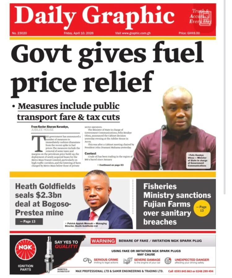 Myjoyonline.com brings you the front pages of the various newspapers across the country.