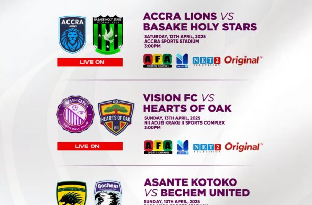 15: 00 Accra Lions vs Basake Holy Stars (AFA TV, Metro TV, Net 2 Television, Original TV)