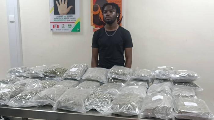 The student, identified as Osei Parker Darren Hazekia, was arrested with over 19.4 kilos of a high-grade strain of cannabis informally known as ‘loud’, while attempting to transit through the Murtala Muhammed International Airport in Abuja.