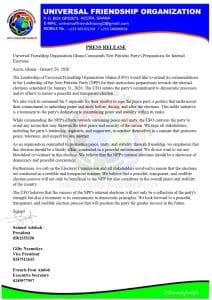 The Universal Friendship Organisation Ghana (UFO) has commended the leadership of the New Patriotic Party (NPP) for its meticulous preparations toward the party’s internal elections scheduled for January 31, 2026.