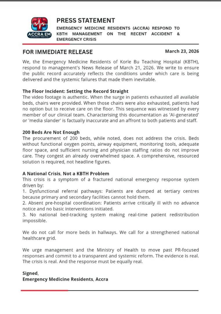 They further explained that the situation at Korle-Bu reflects deeper problems within the national healthcare system.