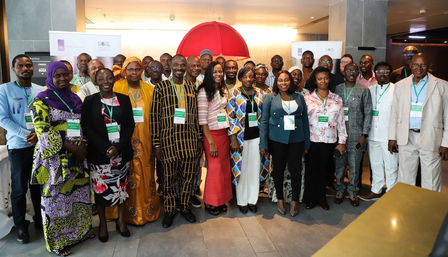 Over 40 government representatives, farmer leaders, scientists, private sector stakeholders and development partners from Burkina Faso, Côte d’Ivoire, Ghana, Mali, Niger, and Nigeria participated in the meeting. Participants from the Permanent Interstate Committee for Drought Control in the Sahel (CILSS), the Economic Community of West African States (ECOWAS), and the World Bank’s Food Systems Resilience Program (FSRP) were also present. The meeting was held under the theme “Catalyzing Stakeholder Collaboration for Sustainable Soil Health in the Sahel.”