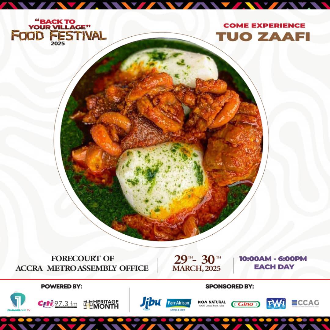 Food lovers and culture enthusiasts have an exciting opportunity this weekend as the ‘Back to Your Village Food Festival’ takes center stage at the Accra Metropolitan Assembly on Saturday, March 29, and Sunday, March 30.