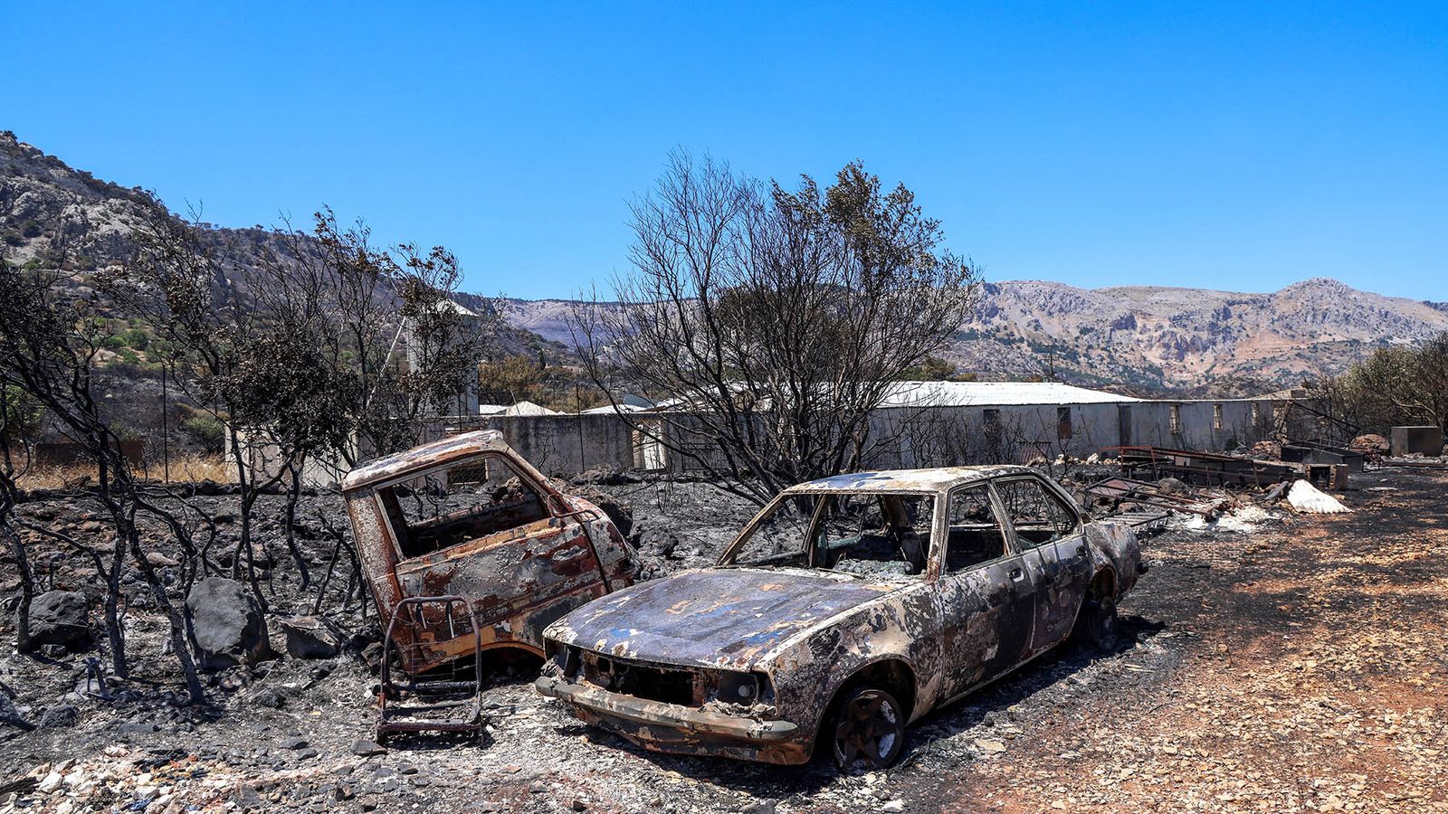 Blazes broke out on Sunday and tore through 10,000 acres of mainly bush and pasture land in three days, according to Greece’s climate crisis and civil protection ministry.